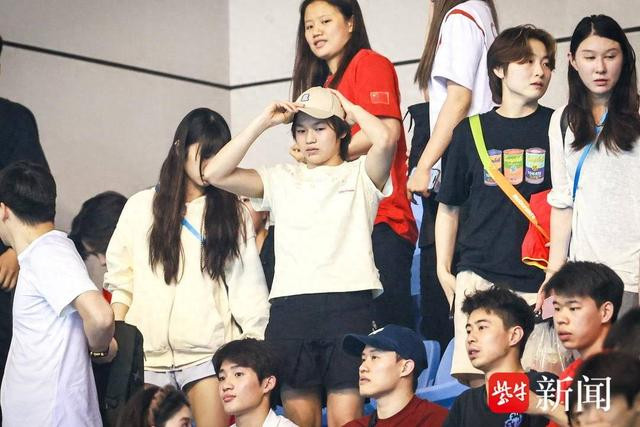 受伤期间的全红婵只能在看台上为队友加油。