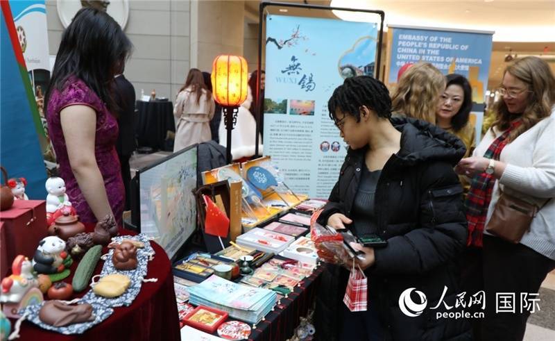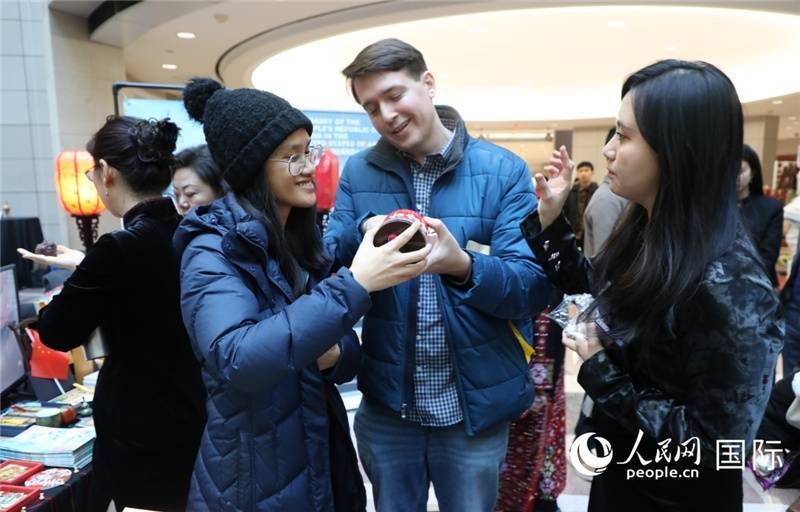 当地时间12月9日,中国驻美国大使馆应邀参加华盛顿特区罗纳德里根大厦和国际贸易中心主办的“冬季国际”大使馆展会。图为当地民众参观中国使馆展台。人民网记者 李志伟摄